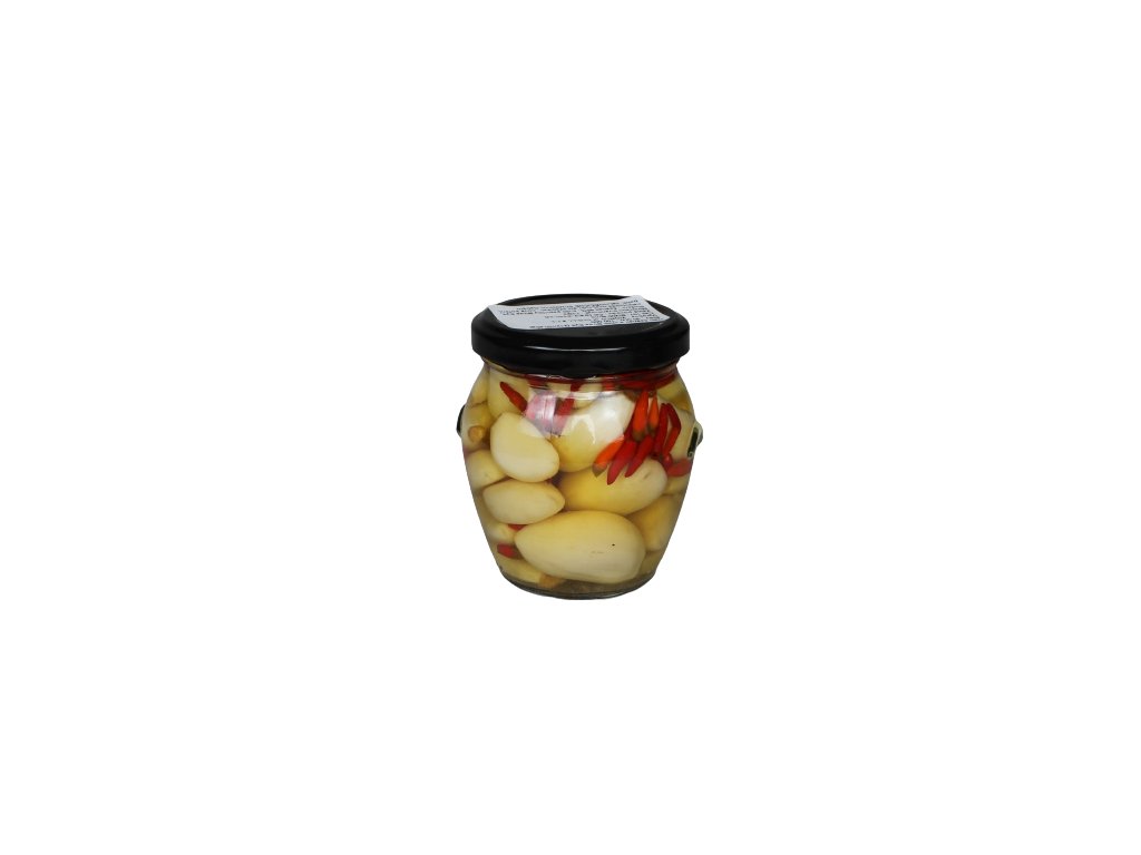 Naložený křupavý česnek doplněný o chilli Bird’s Eye, které dodává jasnou, čistou a příjemně ostrou pálivost. Česnek zůstává pevný, šťavnatý a křupavý, bez rozvaření a bez kompromisů v chuti.