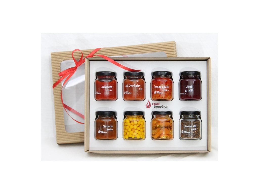 Vyzkoušejte jedinečné chutě a pálivosti různých druhů chilli papriček! Naše dárková sada obsahuje 8 pečlivě vybraných produktů, které vás přenesou do světa ohnivých zážitků. Ideální jako dárek pro milovníky chilli nebo pro každého, kdo chce ochutnat něco nového.